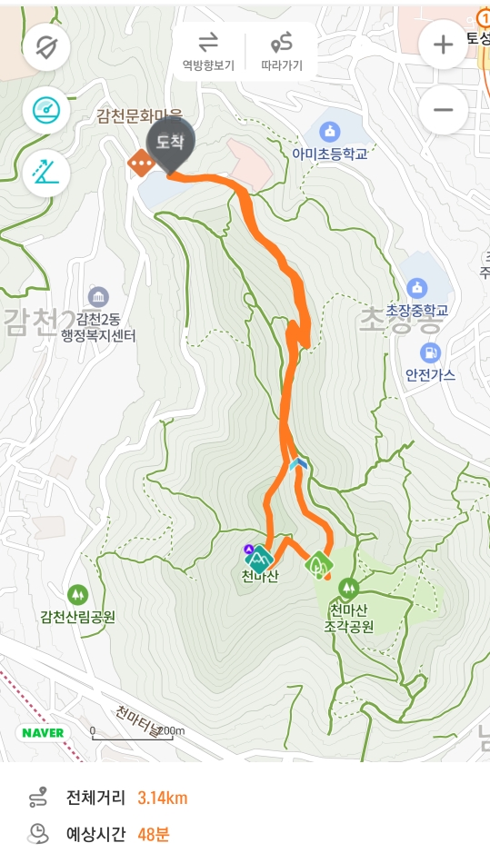 산행코스 : 감정초등학교(폐교) - 천마산정상 - 천마산조각공원 (3km, 1시간)