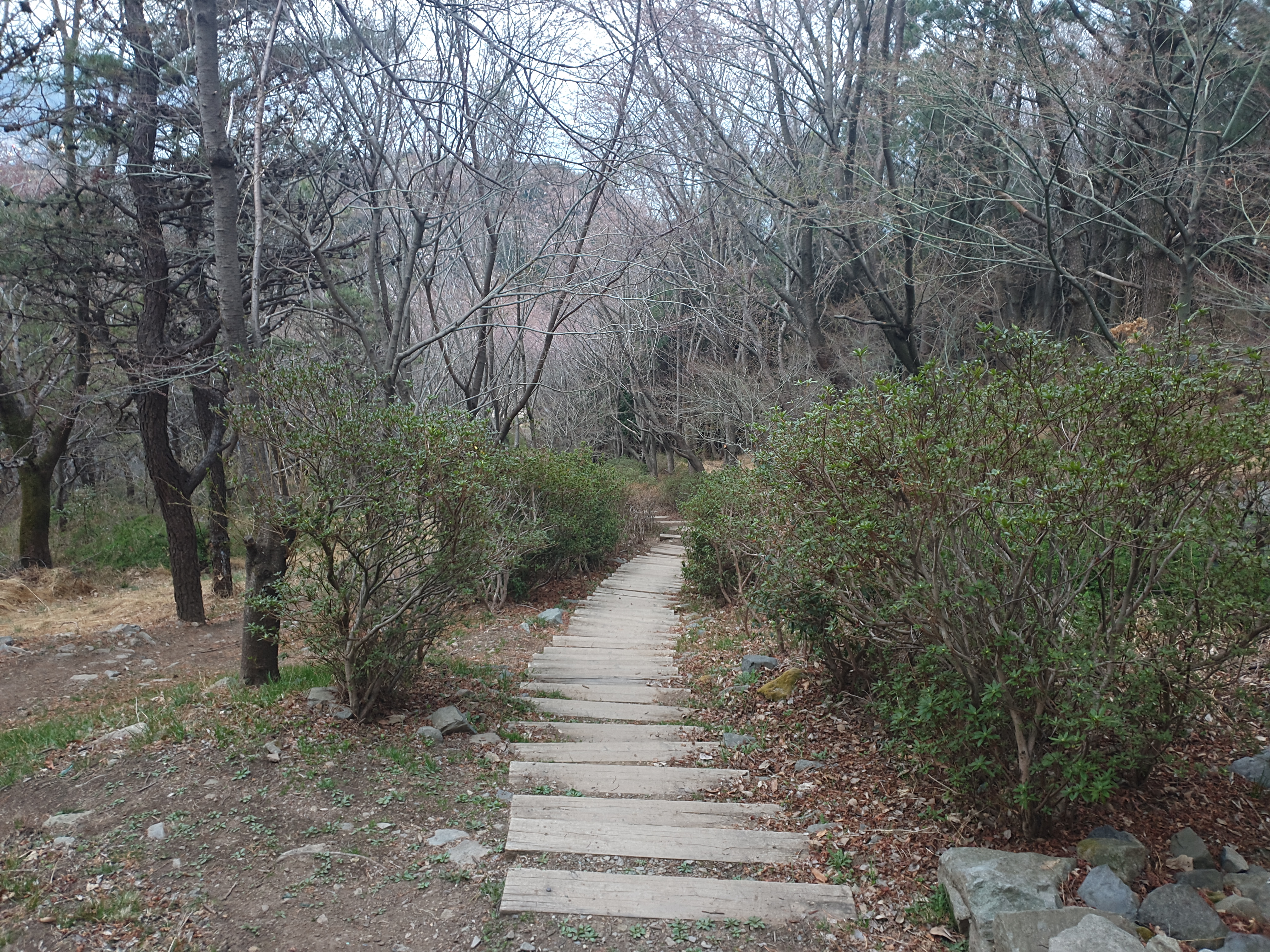 체육공원을 지나서 천마산 조각공원으로 향하는 계단을 내려간다.