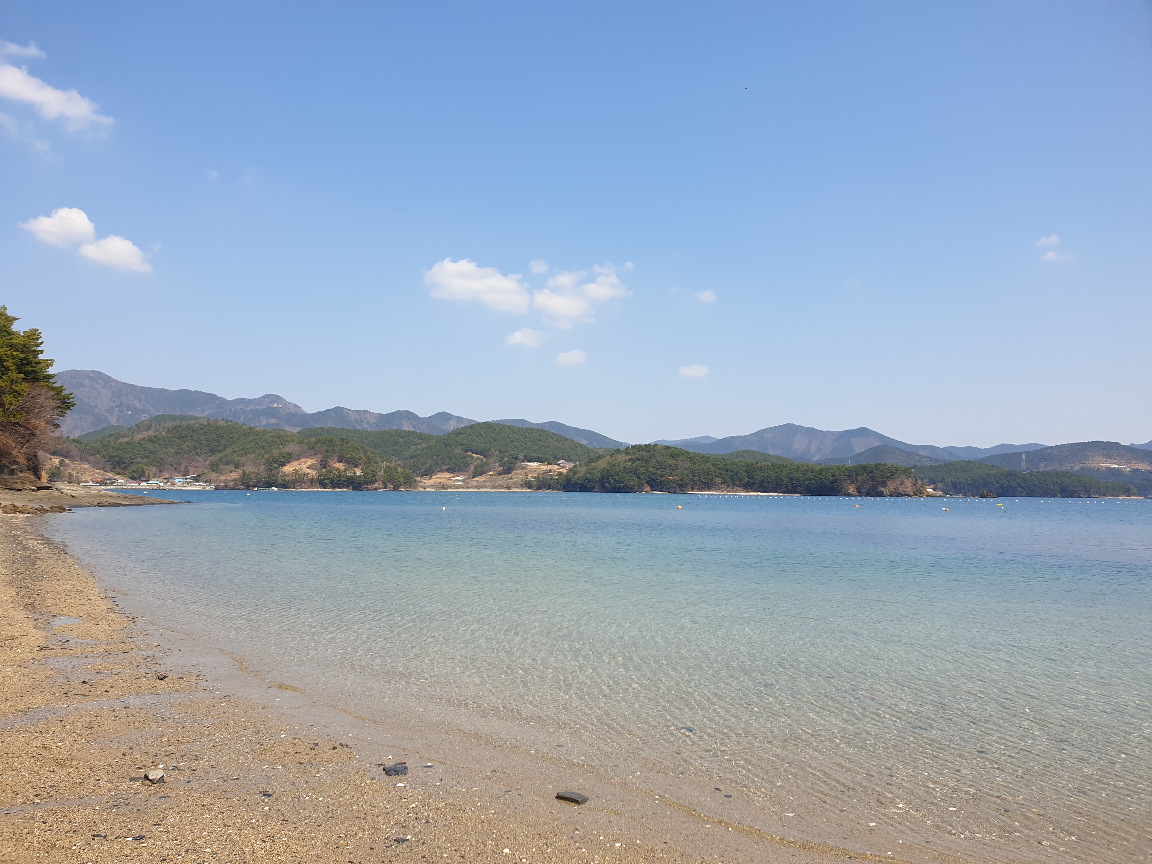 아직은 차가운 물이라 더욱 맑아보이는 자란만의 바다 풍경이 살짝 이국적으로 보인다.
