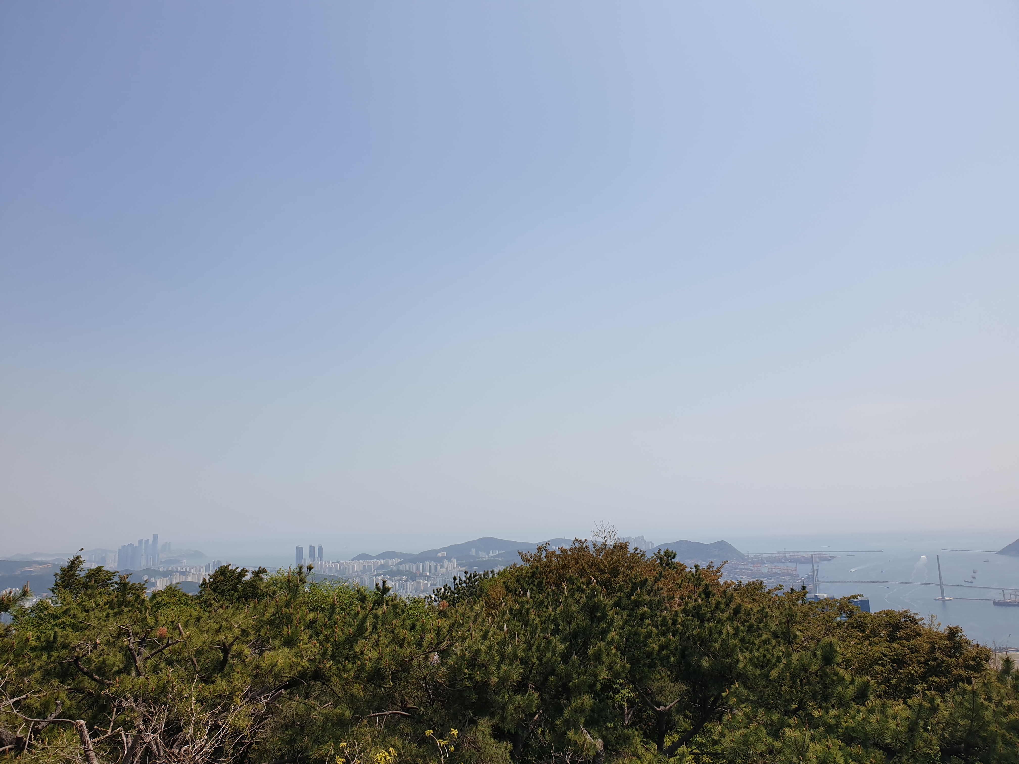해운대 방향 쪽은 조망을 위해 나무 윗동을 잘라냈음에도 살짝 가려 아쉽네.